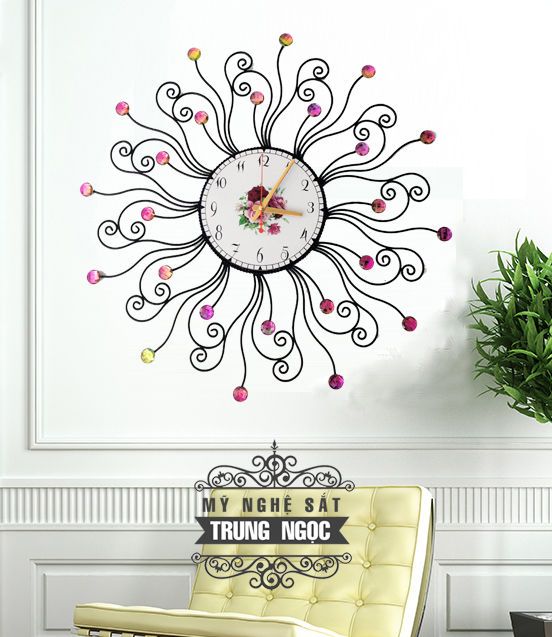 Tranh đồng hồ được làm bằng sắt với hoa văn được uốn tỉ mỉ và sáng tạo, những đường nét mềm mại và sang trọng của chiếc đồng hồ này sẽ tạo nên một bức tranh độc đáo và bắt mắt cho bức tường nhà bạn.