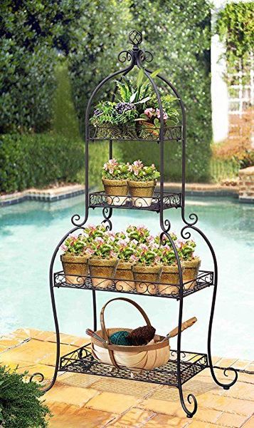 Với bốn tầng kệ, mẫu kệ sắt nghệ thuật này tạo ra không gian trưng bày đa chiều cho các chậu cây hoặc hoa văn. Bạn có thể sắp xếp các chậu cây cảnh trên từng tầng của kệ, tạo nên một cảnh quan xanh mát và sống động trên sân vườn của bạn. Hình tháp của kệ mang lại một cấu trúc hấp dẫn và cân đối, tạo nên một điểm nhấn nghệ thuật trong không gian xung quanh.