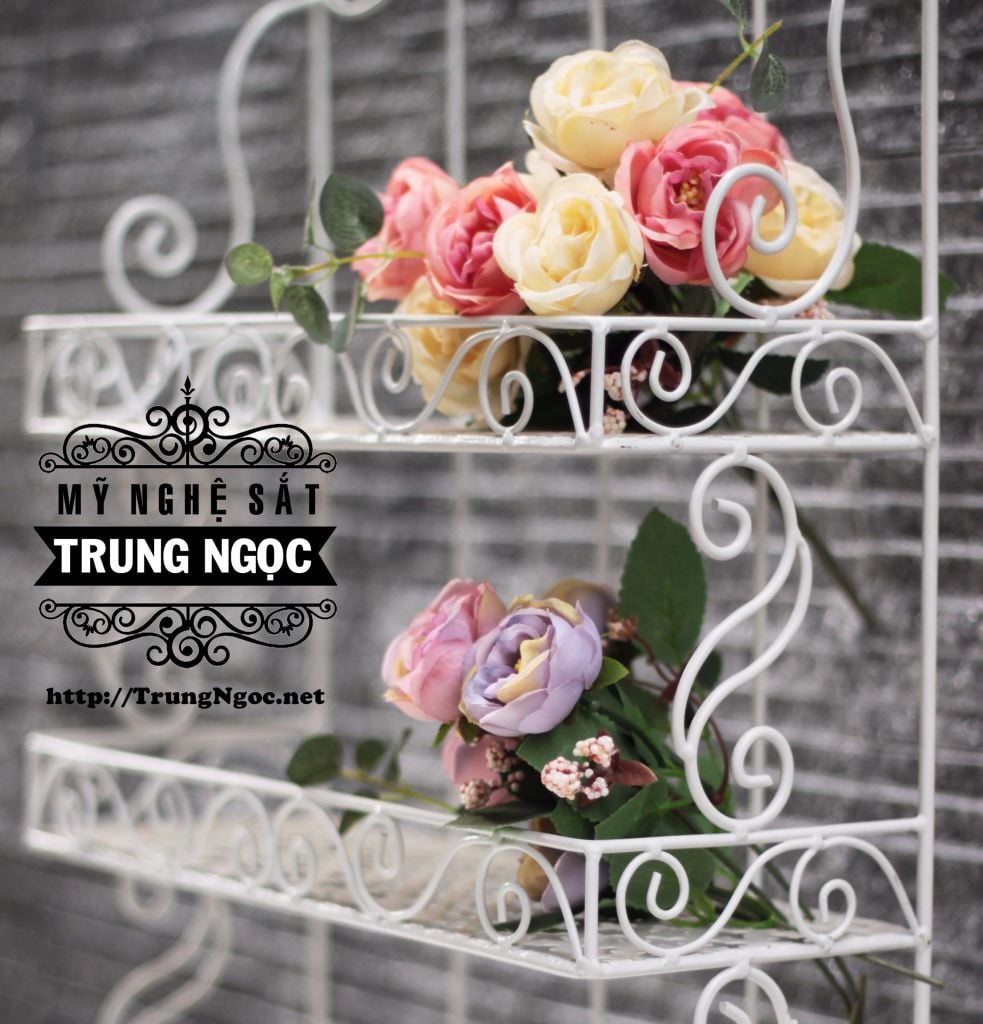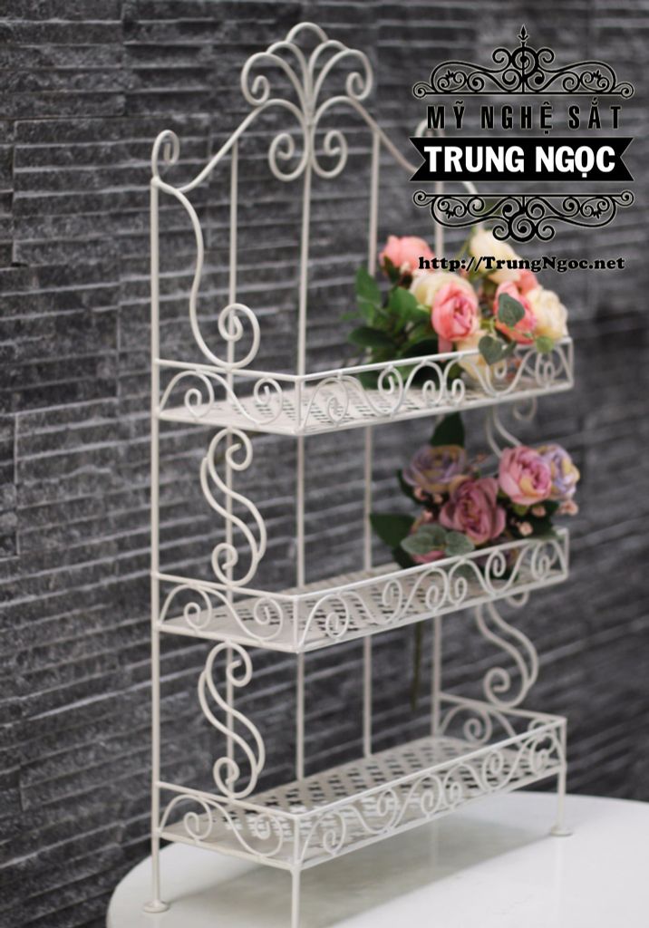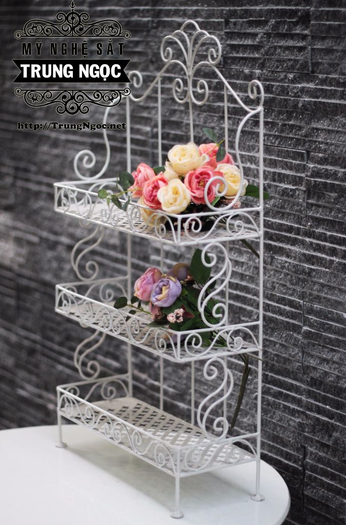 Kệ sắt trưng hoa 3 tầng, kích thước kệ nhỏ để trên bàn, hoặc trang trí trên các kệ lớn hơn. Hoa văn sắt uốn đẹp và sắc sảo.