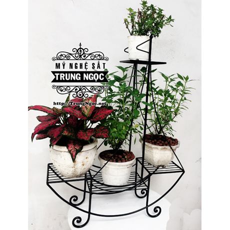 Kệ trưng hoa 4 tầng được làm bằng sắt uốn mỹ thuật cao cấp, kỹ thuật sơn tĩnh điện chống trầy xướt và gỉ sét.